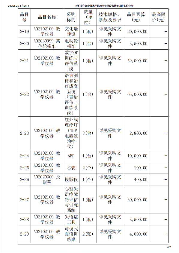 呼伦贝尔职业技术学院教学仪器设备储备项目询价公告