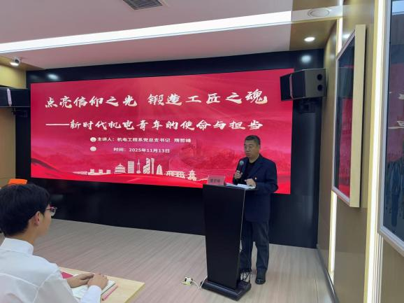 11月13日,机电工程系第七期“青年马克思主义者培养工程”迎来开班第一课。系党总支书记隋哲峰以“点亮信仰之光 锻造工匠之魂——新时代机电青年的使命与担当”为主题,为青马班学员带来了一场精彩生动的专题党课。